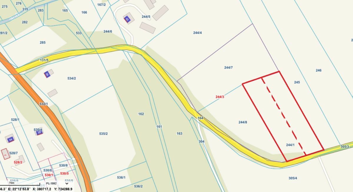 Malowniczo położona działka nr 244/1 (dwie połówki działki) o pow. 2750m2 w miejscowości Wojciechów Kolonia Pierwsza.Obie działki w pierwszej linii zabudowy, wymiary 24,50 x 57,50.